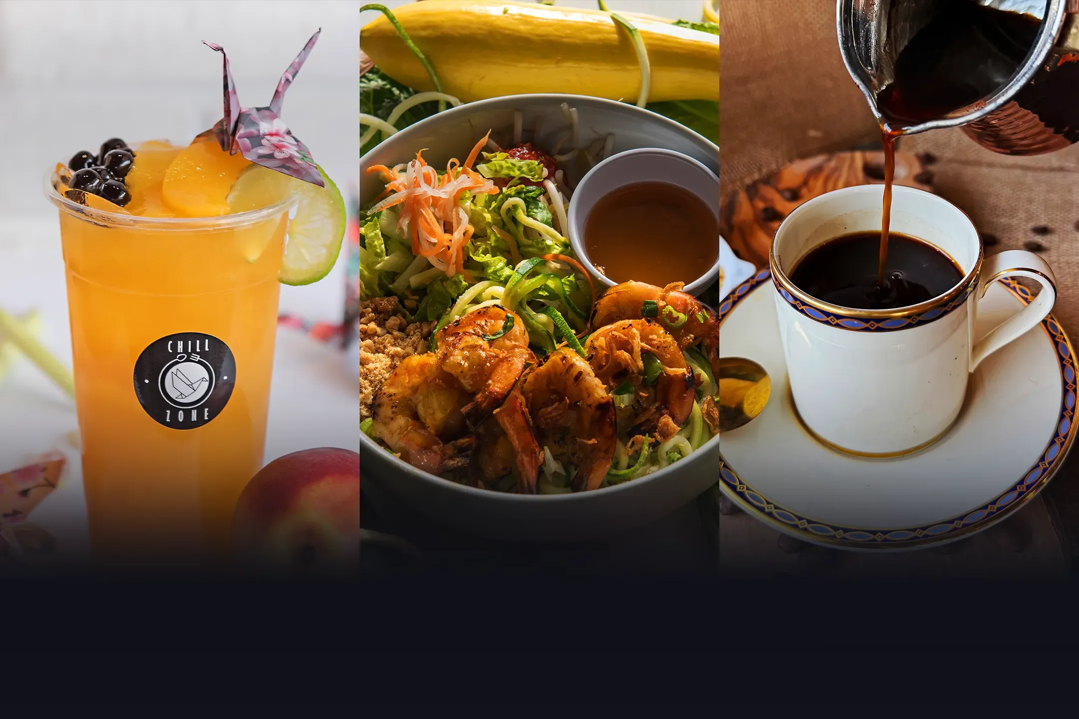 Start with iced Vietnamese Coffee with condensed milk and coconut cream. Tea lovers can shake jasmine with citrus marmalade, or brew matcha on the rocks, then finish any glass with boba, aloe, or jelly for playful texture.