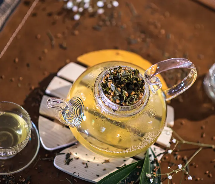 Jasmine green tea blended with toasted rice for a nutty,earthy taste.