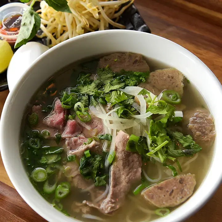 Traditional beef broth with rice noodles, onions, and herbs. Choose one, two, or all three choices of meat: