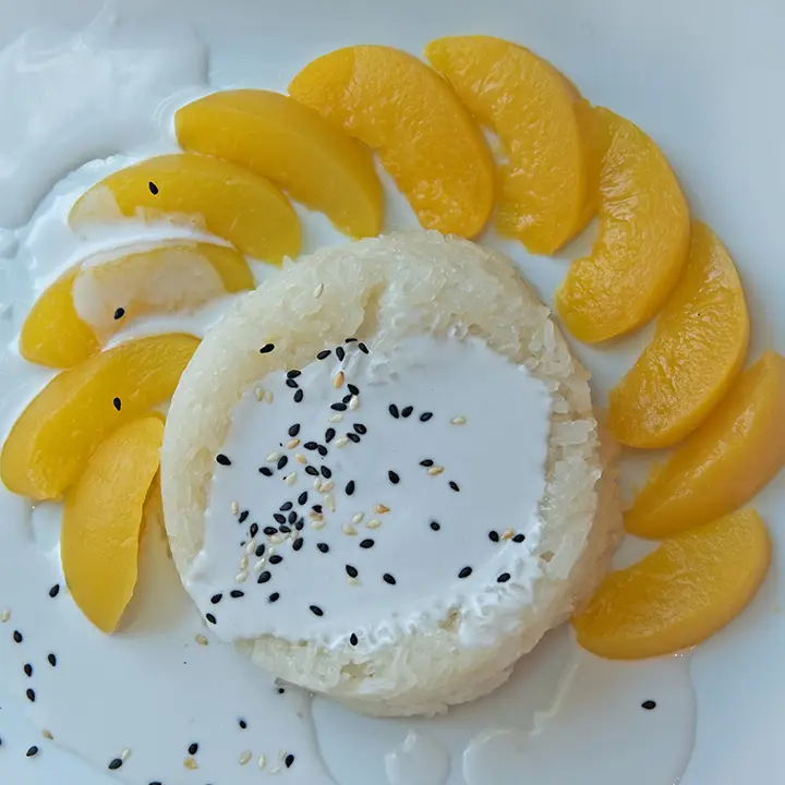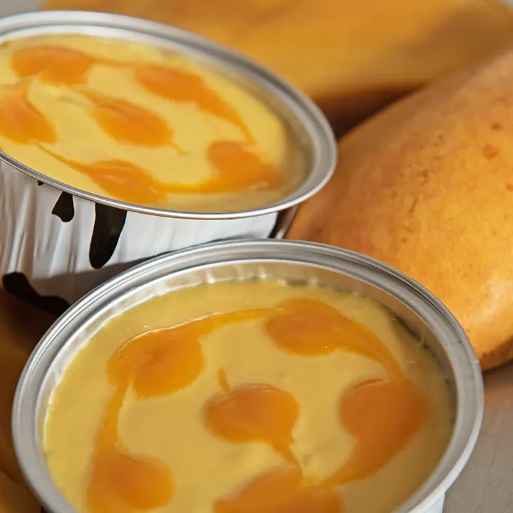 A sweet and refreshing mango smoothie blended with frozenmango chunks, mango juice, and a dash of tajin— served in a cup lined withcoconut milk cream.