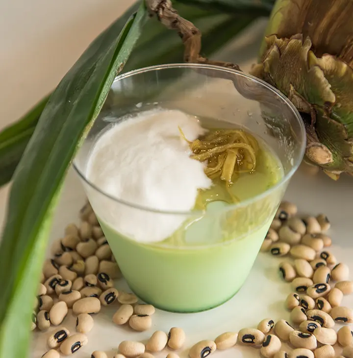 Strong double espresso sweetened with condensed milk, topped with a layer of coconut milk cream.