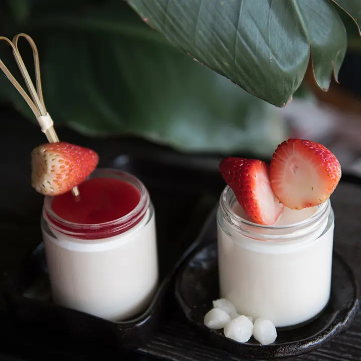 Refreshing coconut juice shaken with sweet strawberry jam and tangy passion fruit.