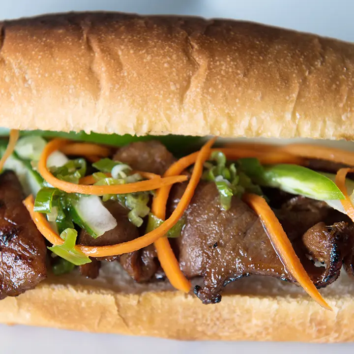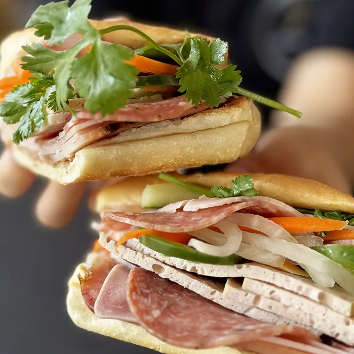 Viet baguettes served with cucumber, cilantro, jalapenos, pickled papaya and carrots, and specialty aioli.