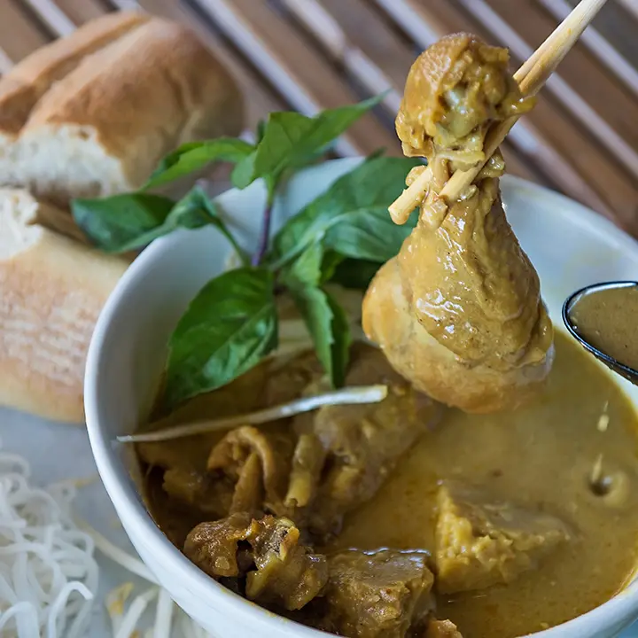Coconut milk curry with chicken drumstick and taro, served with choice of carbs: