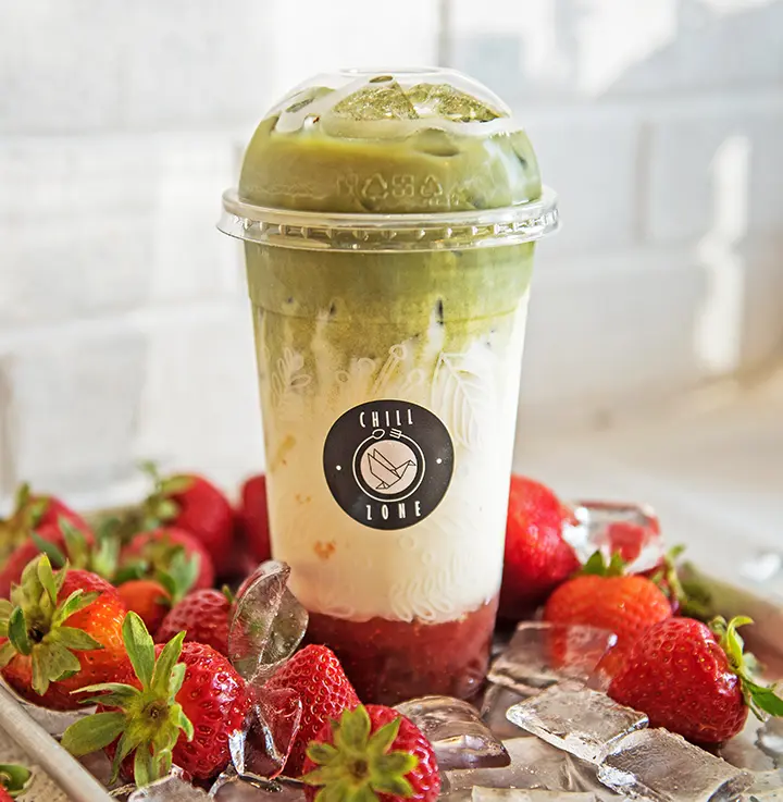 A smooth matcha milk tea layered with the malty richness of Milo chocolate powder.