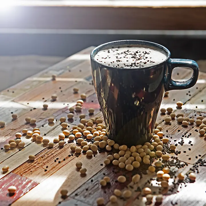 A golden blend of almond milk, turmeric, coconut oil, cinnamon, and honey.
