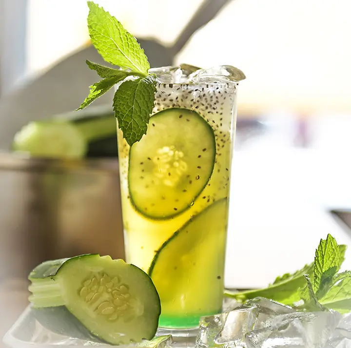 Fragrant jasmine tea shaken with mint jam, offering a cool, minty burst.