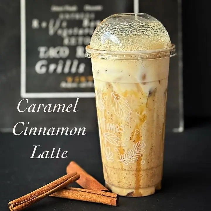 Espresso, caramel, and cinnamon are poured over milk and ice for a sweet, spiced chilled drink.