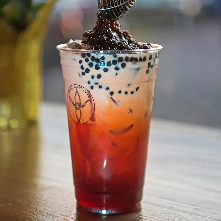 A sweet and refreshing milk tea beverage with your choice of toppings.